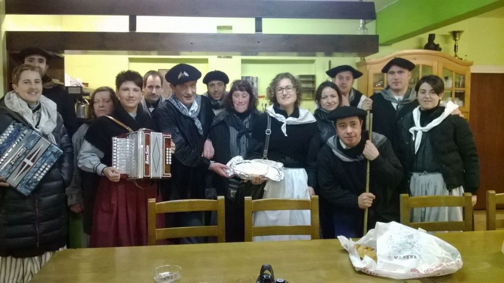 Aizarnazabalen asteburuan ibili dira santaeskean. Larunbatean, goizean hasi eta egun osoko saioa egin zuten Adiskide Bertso Eskolako kideek. Urtero bezala, Aitor Mendiluze bertsolaria ibili zen beraiekin baserriz baserri kopla kantari.