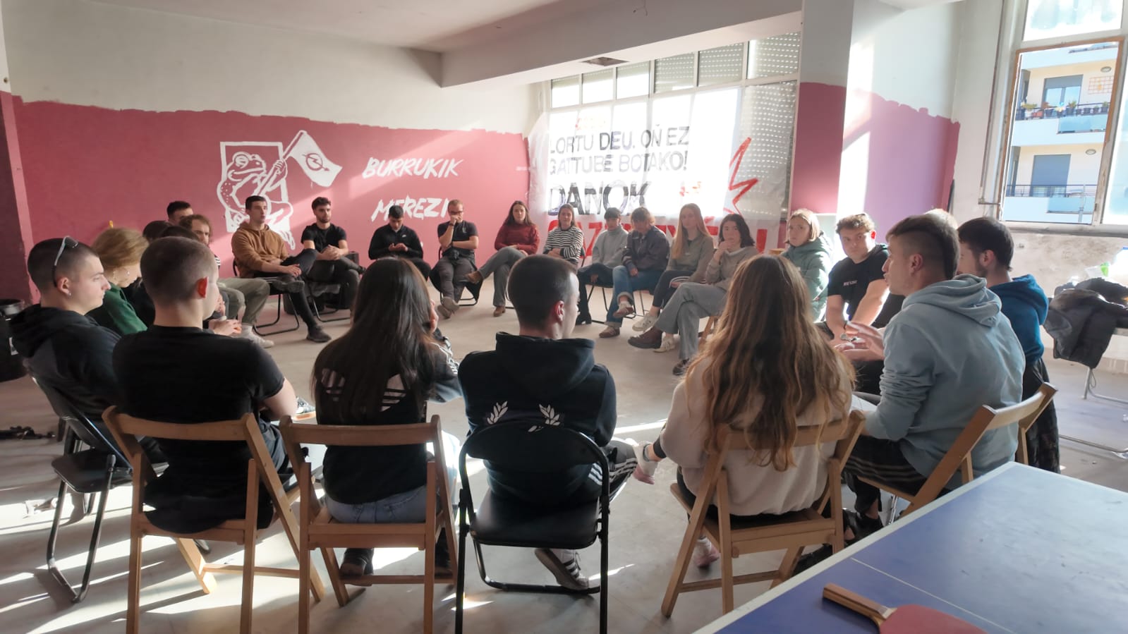 Gazteen usteetan, "argi" geratu da zein den egoera: "Instituzioek utzikeria baino ez dute erakutsi, eta gazteok gure kabuz egin dugu bidea". Espazioa txukundu dutela, biziberritu dutela eta eduki eta jardueraz bete nahi dutela eta beteko dutela ziurtatu du.