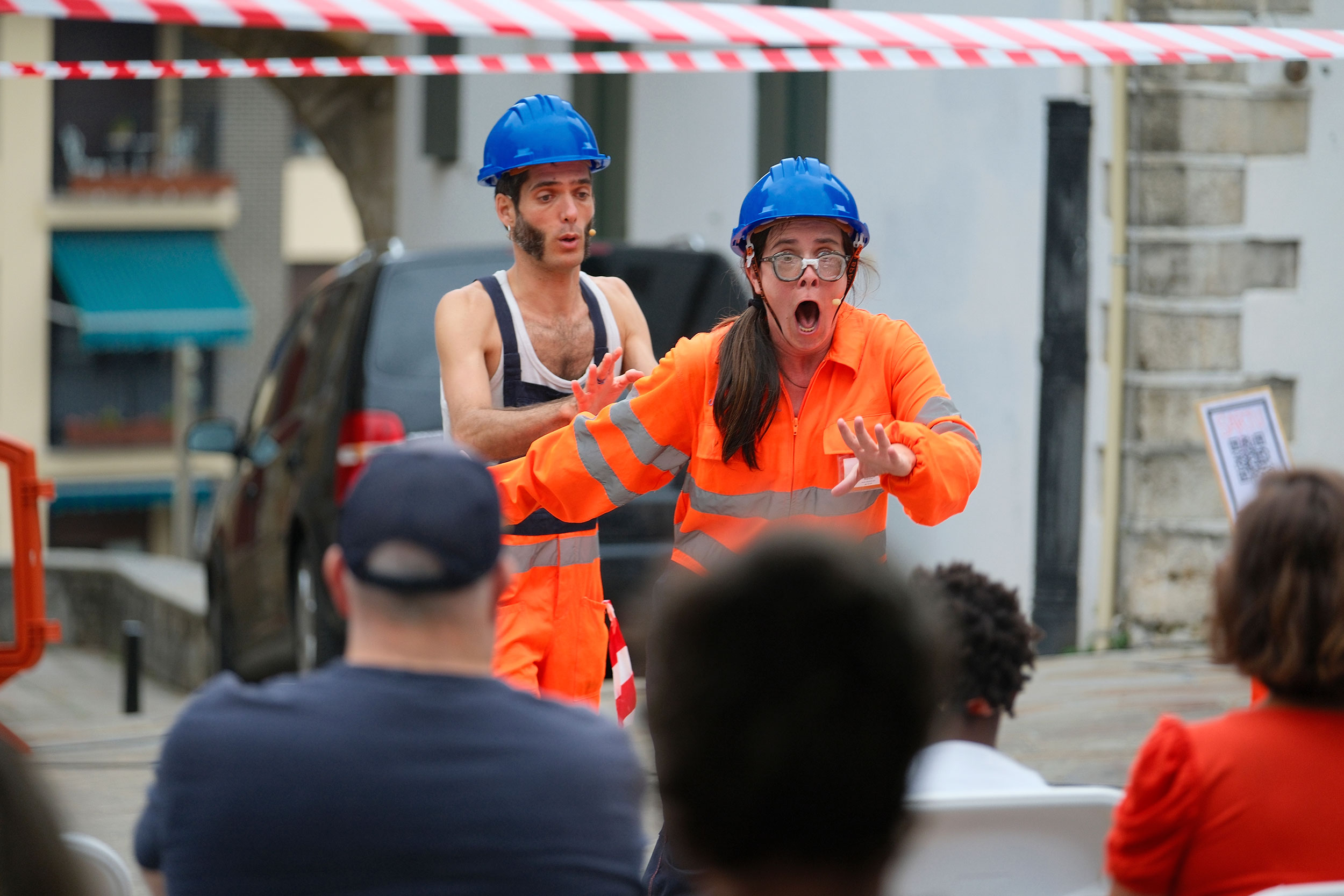 Goitibera taldekoak, 'Eraitsi SL' kale antzerkiaren emanaldi batean. (Goitibera)