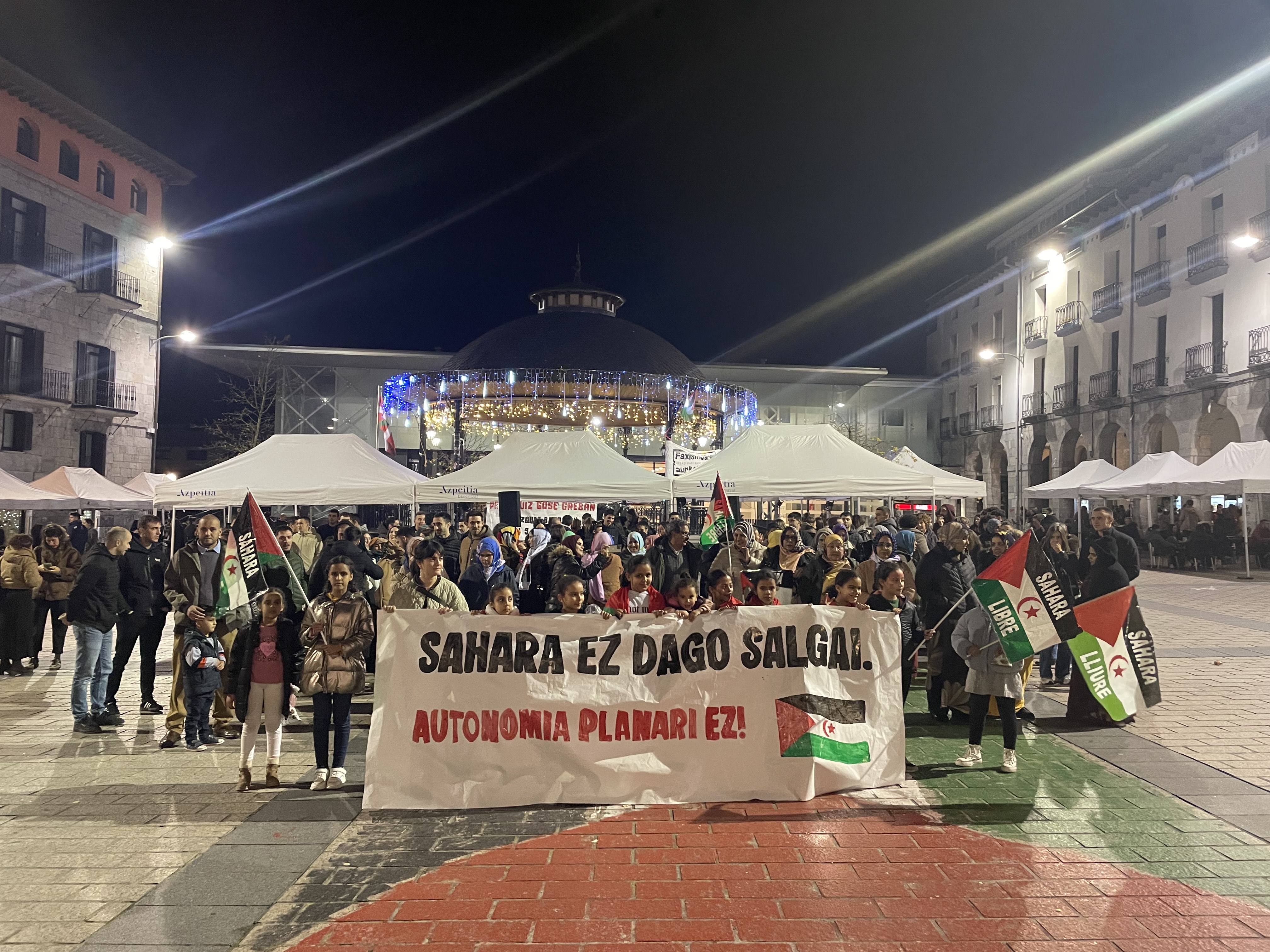 Urola Erdiko Kontseilu Sozialistak eta Saharako komunitateak deituta, Sahara ez dago salgai. Autonomia planari ez! leloarekin elkarretaratzea egin zuten atzo iluntzean hainbat herritarrek plazan.