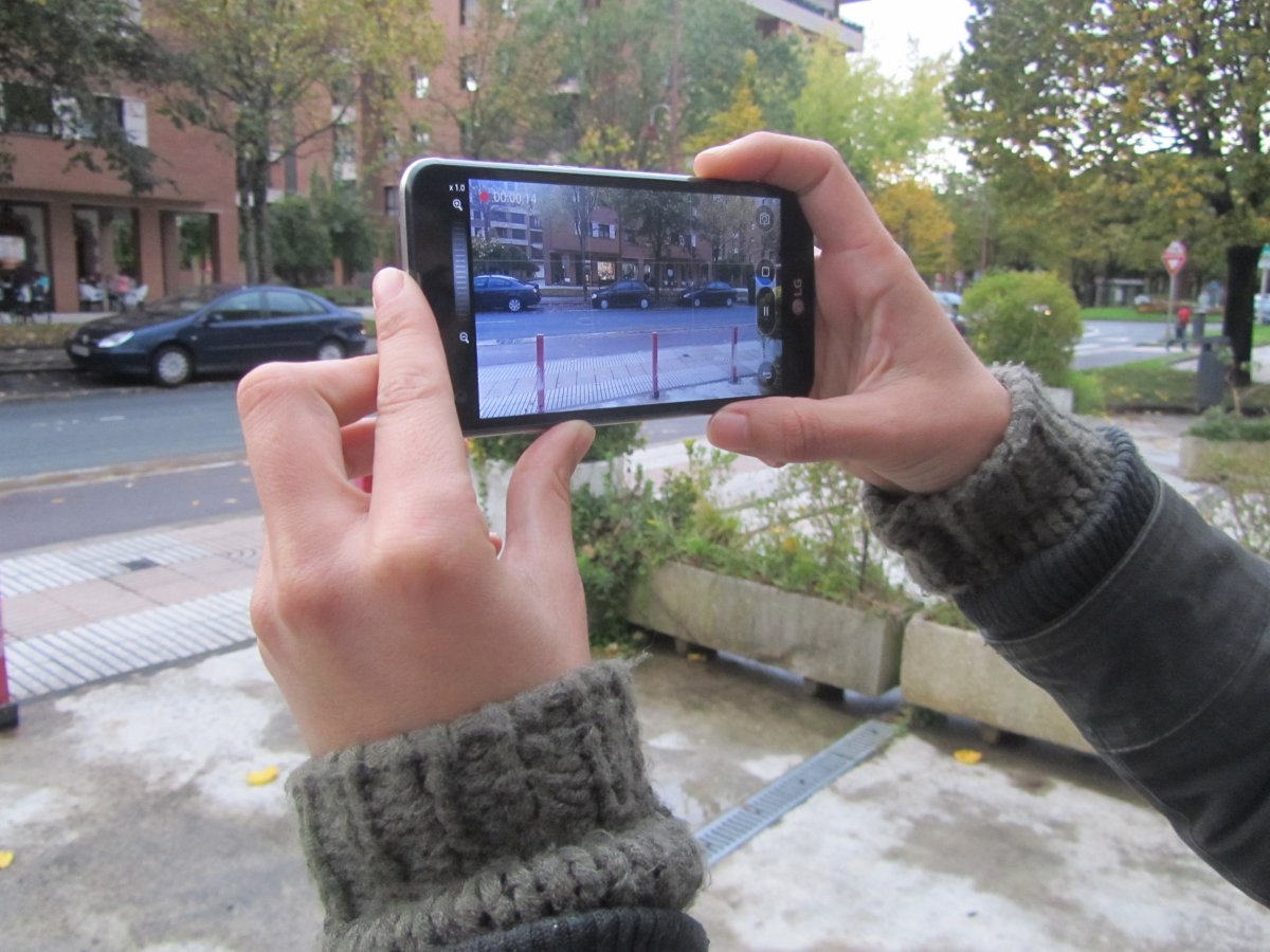 Pertsona bat sakelako telefonoarekin irudiak grabatzen.