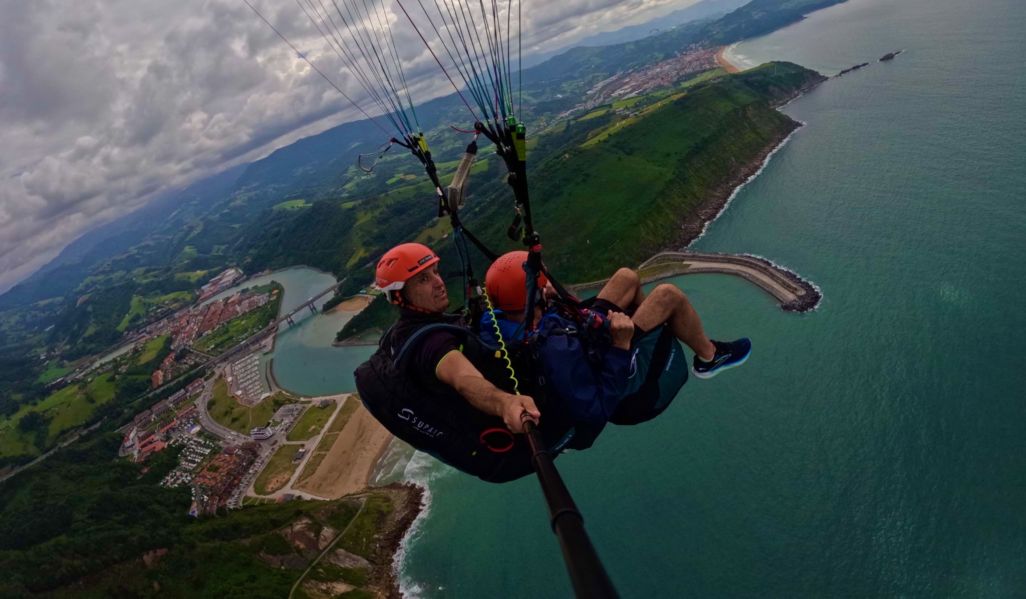 Iñigo Urrutikoetxea parapenteko irakaslea, Orio gainetik igarotzen hegaldi batean. (utzitakoa)