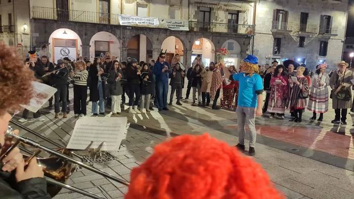 Ostegun Gizenean Udal Musika Bandako, Banda Gazteako eta Kantujira taldeko kideek karnabaletako doinuak zabaldu dituzte Azpeitiko kaleetan. Kantuan eta musika joz ibili dira kalez kale eta hainbat txokotan geldialdiak eginez.