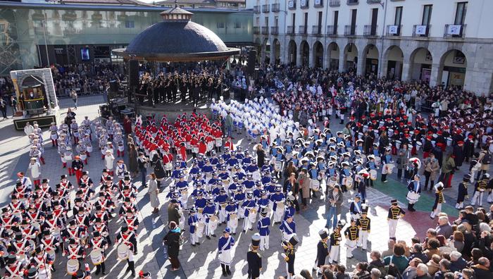 Helduen lekukoa hartuta, Alde Zaharreko kaleak bete dituzte 500 umek baino gehiagok gaur eguerdiko umeen danborradan. Eguraldi paregabea izan dute lagun.
