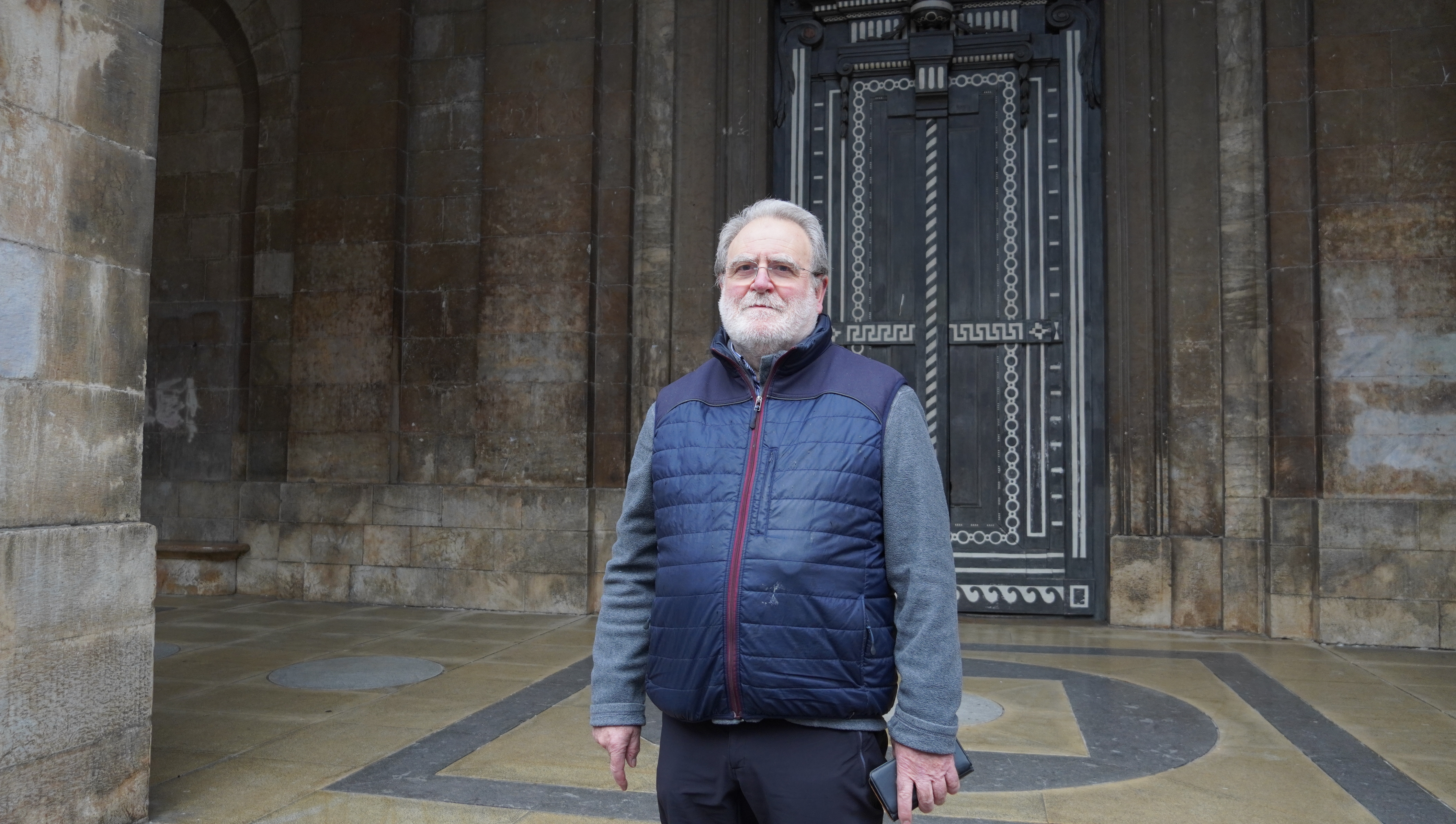Joxi Eguzkitza, Soreasuko Sebastian Donearen parrokiako ate nagusiaren aurrean. (Mailo Oiarzabal)