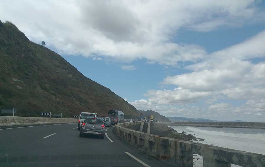 Eusko Jaurlaritzaren Trafiko Zuzendaritzak jakinarazi duenez, Zumaia eta Zarautz arteko errepidea itxi dute, itsasbazterreko arrisku maila handia tarteko. Hasieran Zumaia eta Getaria arteko bidea itxi duten arren, minutu gutxiren buruan jakinarazi dute kostako errepidea osorik itxiko dutela, Getariatik Zarautzerako zatia barne. Erakundeak azaldu duenez, "denboralea baretu arte" egongo da itxita errepidea.