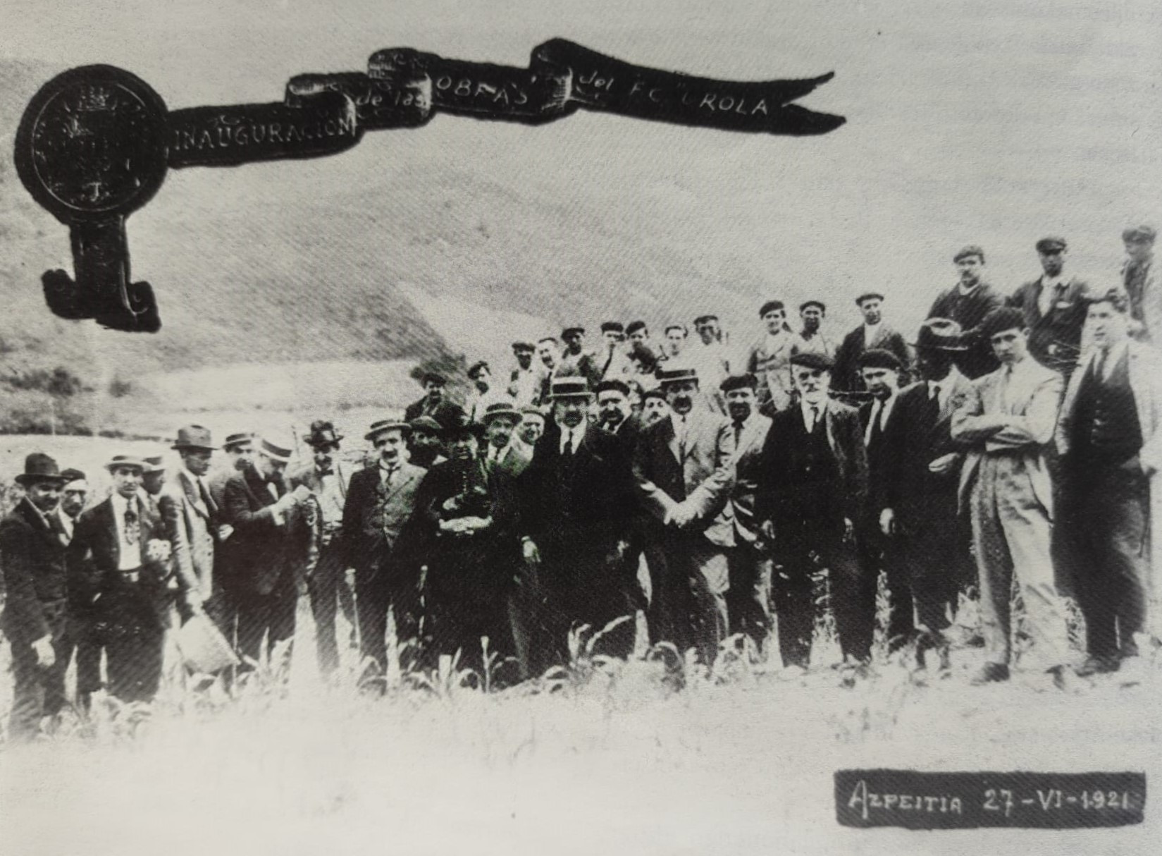 Azpeitian, 1921eko ekainaren 27an, Urolako trena eraikitzeko lehen harria jarri zuten eguna. (Kutxa fundazioa)