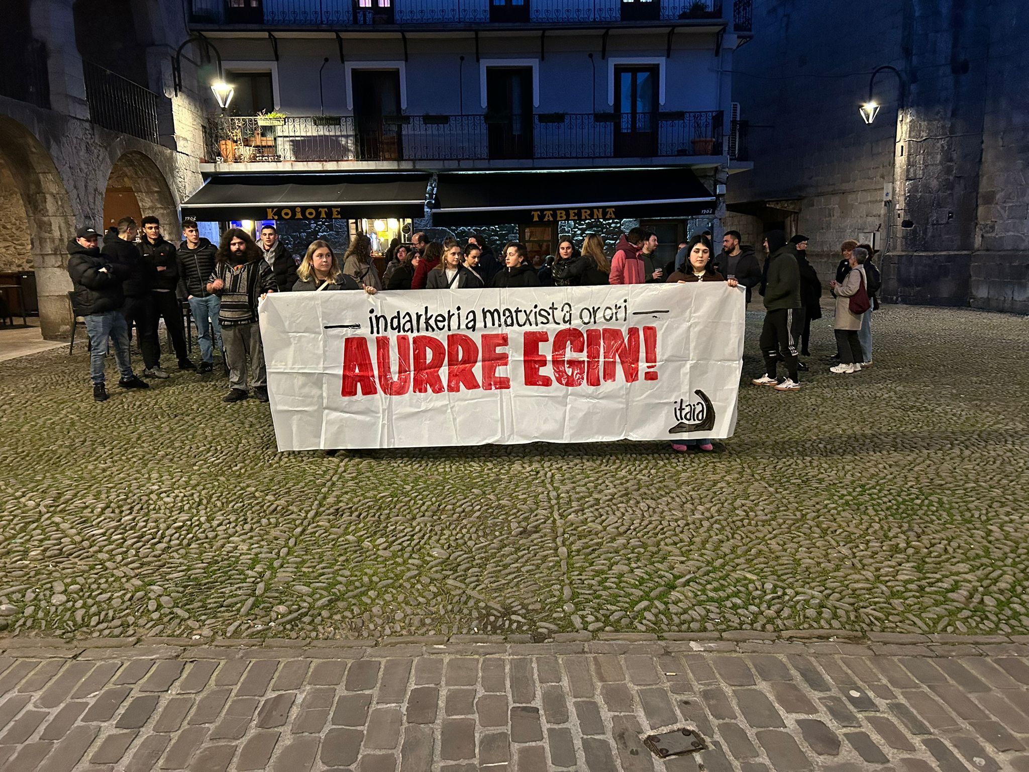 Gizon batek 28 urteko emaztea hil eta ama larri zauritu zituen atzo Sarrigurenen (Nafarroa), eta Itaia emakumeen antolakunde sozialistak hilketa matxista hori salatzeko protestak egin ditu gaur Euskal Herriko hainbat herritan, tartean Azpeitian, Azkoitian eta Zestoan. Indarkeria matxistari aurre egin! lelodun pankarten atzean elkartu dira hainbat herritar, eguerdian Azpeitiko plazan, eta iluntzean Azkoitian eta Zestoan. Indarkerria matxistaren aurrean "posizionatzeko" eta "borrokara batzeko" deia egin du Itaiak.