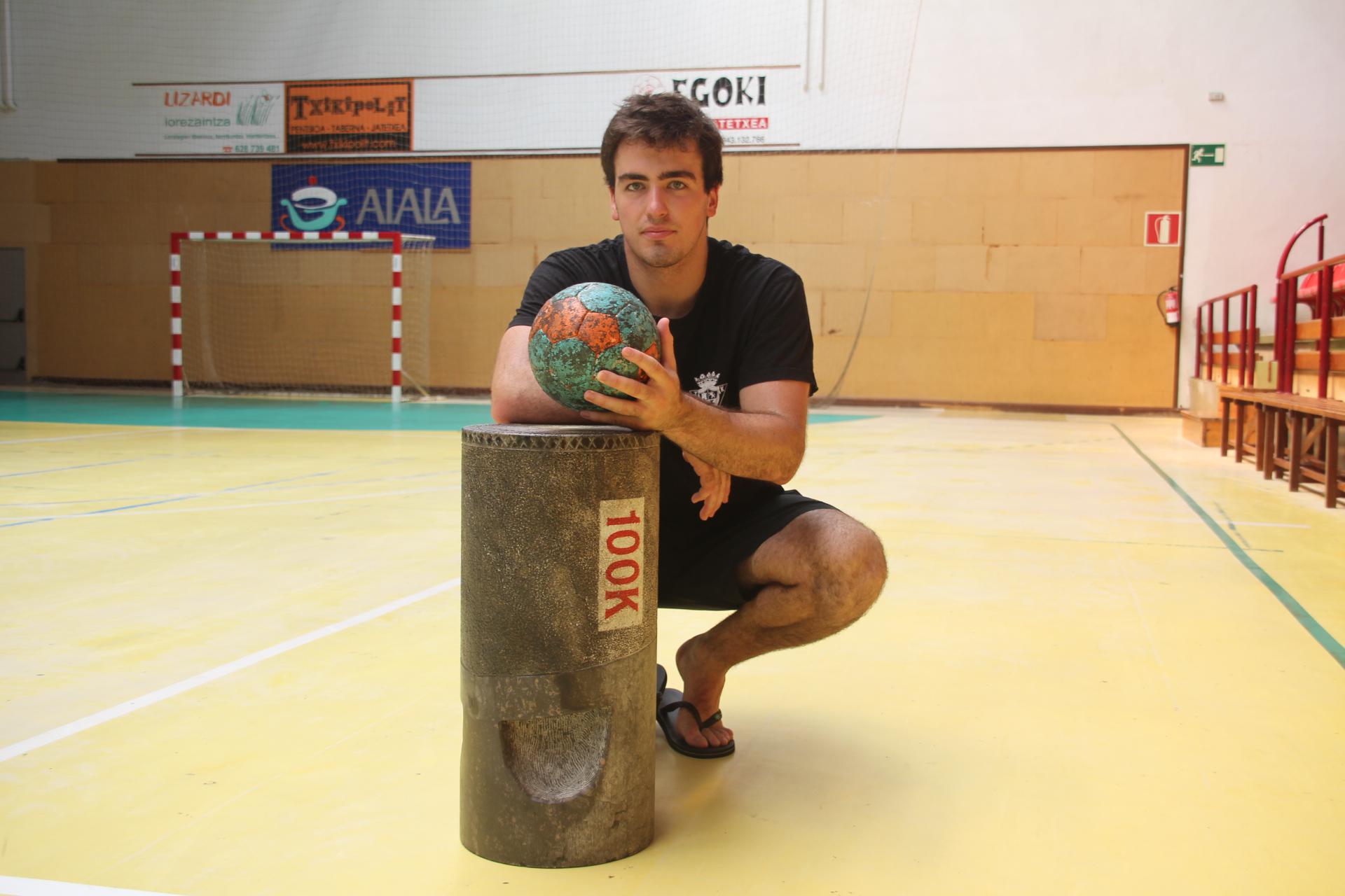 Xabat Olaizola harrijasotzailea eta eskubaloi jokalaria (Aritz Mutiozabal).