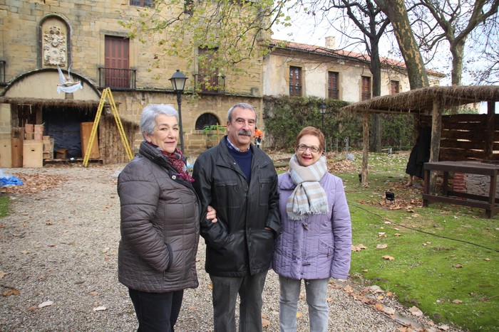 Pakita Galarraga, Javier Izeta eta Arantxa Eizagirre, Narrosko lorategian, Gabonetako Jaiotzaren muntatze egunetan. (Aritz Mutiozabal)