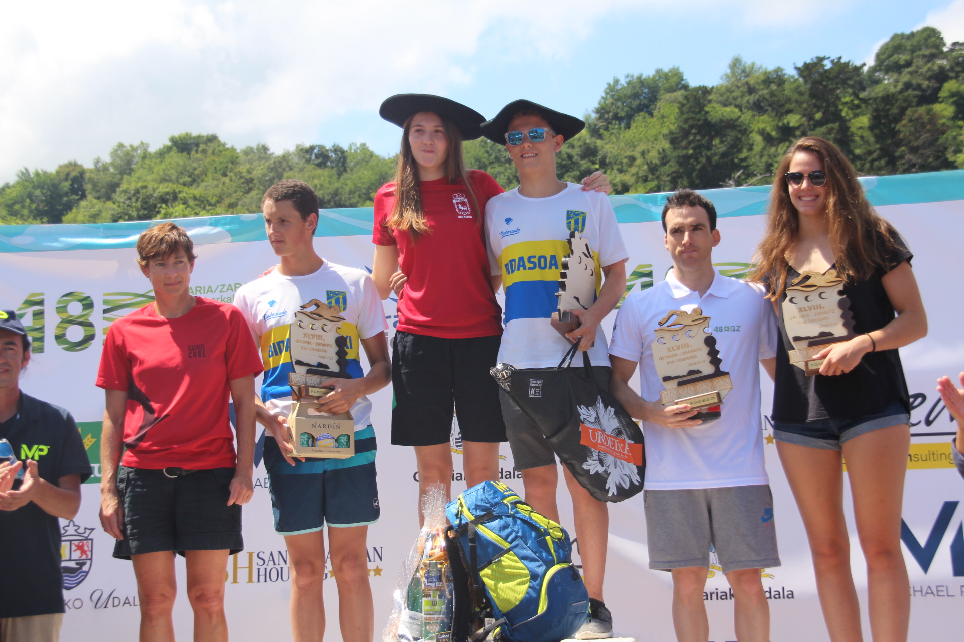 Itsas-zeharkaldiko garaileak, podiumean. (Amaia Urbieta Arruti)
