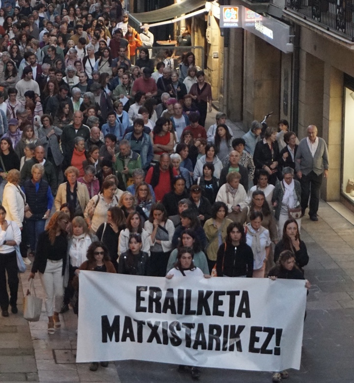 Egia esan, mugimendu feministatik ez dakigu nola adierazi ozenago indarkeria matxistaren aurkako aldarria, ez dakigu zer gehiago egin lehen mailako arazo izan dadin guztiontzat. Hamarkadak daramatzagu indarkeria matxistaren dimentsioak bistarazten, salatzen, aurre egiteko estrategiak eskatzen eta erreparazio bideak ehuntzen. Baina hau denon ardura da, herri oso batena.