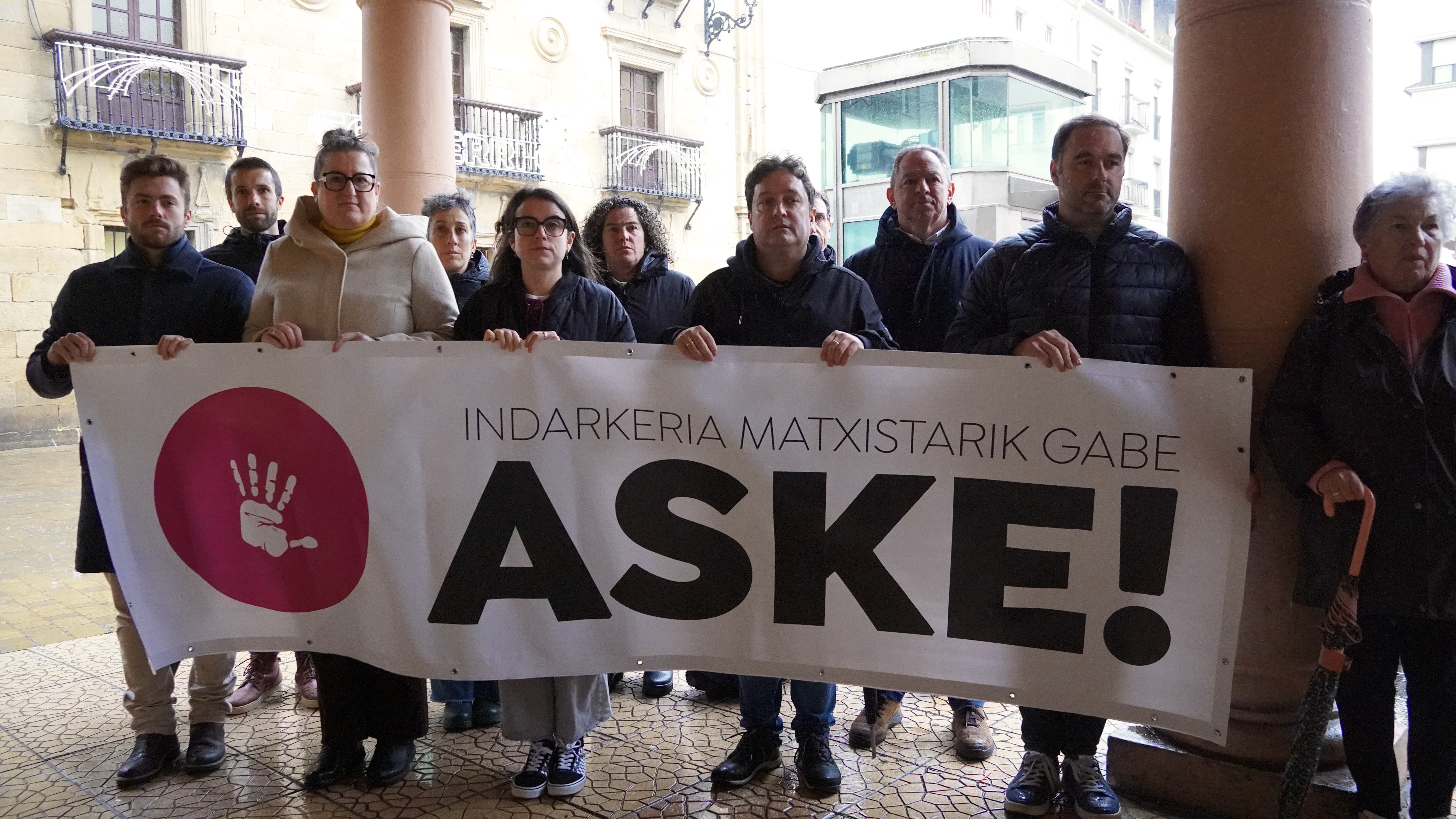 Zarauzko Udalak emakume baten aurka izandako eraso matxista baten berri eman zuen atzo, eta herritarrak deitu zituen jazoeraren aurka bildu eta gertatutakoa salatzera. Hala, elkarretaratzea egin dute gaur eguerdian udaletxearen aurreko aterpe batean, eta bertan izan dira udaleko zenbait ordezkari. Indarkeria matxistarik gabe aske! idatzita zuen pankarta baten atzean bildu dira, eta isiltasuna mantendu dute zenbait minutuz, gertatutakoa gaitzesten.