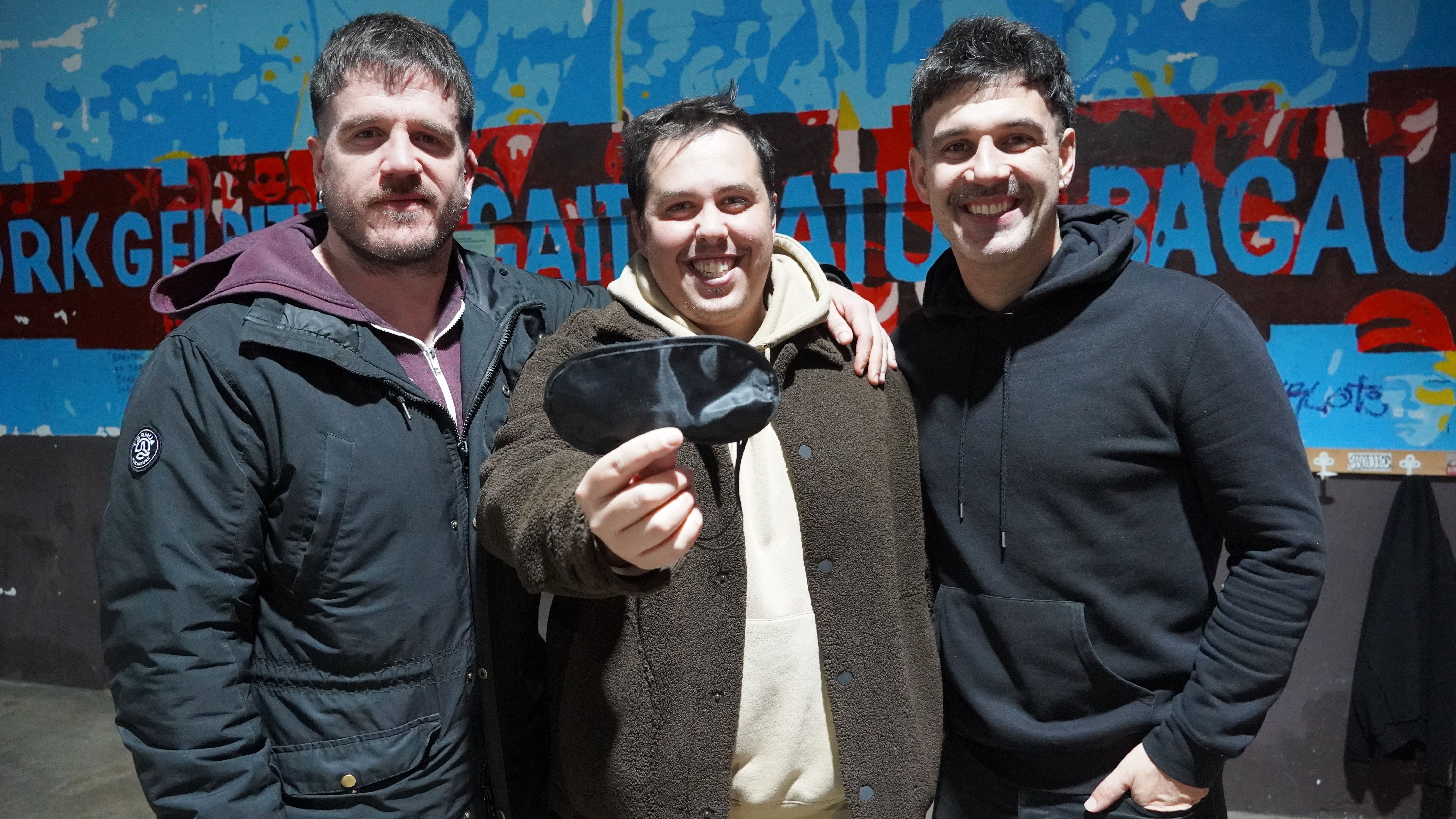 Estalkiaren ideia ere modu bitxian sortu zen. "Lehen kontzertua antolatu genuenean, Garoa liburu dendara eraman genituen sarrerak, eta bertako neskak galdetu zigun ea begiak estaltzekoak erabili behar genituen. Hark eman zigun ideia", azaldu du Portillok. Lehen aldirako, modu inprobisatuan, burkoen oihalak erabili zituzten publikoaren begiak estaltzeko. "Nik uste dut dena ikusten zela!", gaineratu du Portillok.