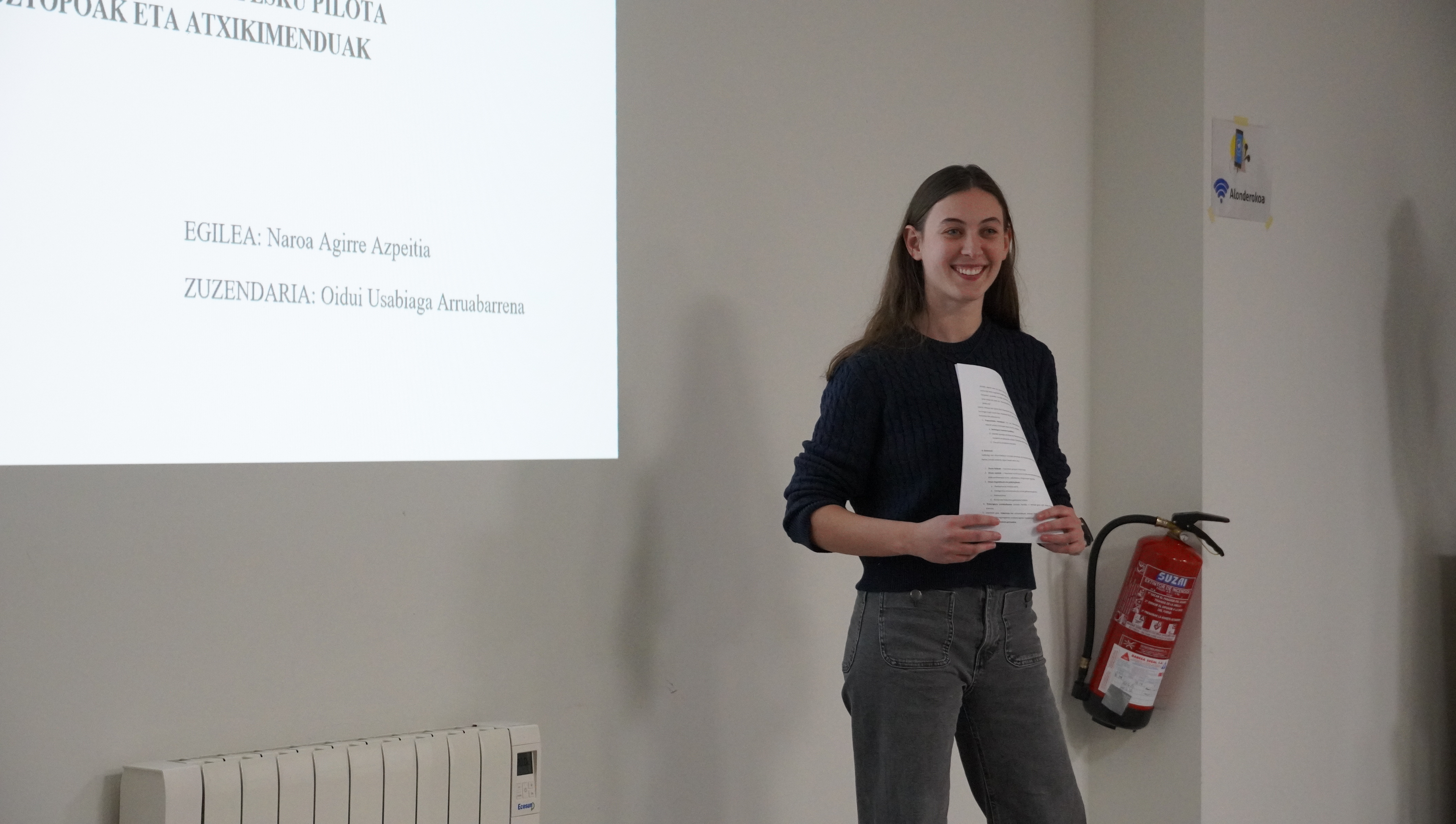Arroako pilotariak Jarduera Fisikoaren eta Kirolaren Zientzietako Gradurako ondu duen lana aurkeztu zuen atzo, ostirala, Zestoako Alondero aretoan. Zergatik ez dute neska arabiarrek esku pilota praktikatzen? galderak abiatu zuen Agirreren gradu amaierako lana, eta aurkitu ahal izan dituen erantzunak aletu zituen jendaurrean.