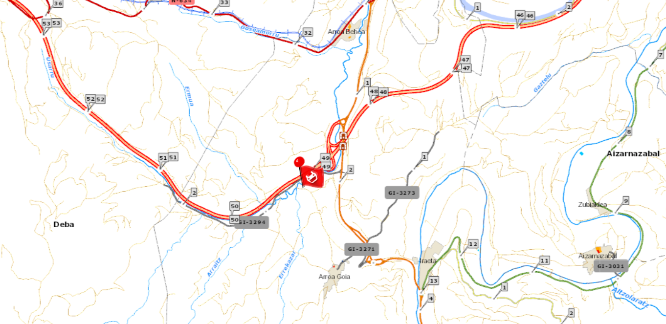 Ezbeharra izan duten lau autoak erretiratu ostean, ezkerreko erreia ireki dute, eta trafikoa zertxobait arindu du horrek; hala ere, oraindik ere ilarak daudela jakinarazi du Ertzaintzak. Kamioia erretiratzen eta errepidea garbitzen ari dira.