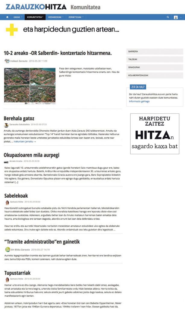 Zarauzkohitza.eus webguneak, komunitate betearekin. Egun hainbat dira gailu horretaz baliatzen direnak. Herriko kirol taldeek, kasu, kirol egitarauaren zein partidetako emaitzen berri ematen dute, eta baita horien kronika eta argazkiak gehitu ere. Gizarte taldeek esku artean dituzten proiektuen berri ematen dute; horren adibide da Hotz Zarautz. Alderdi politikoak, ZarautzOn, Murkil, Jalgi... asko dira Zarauzko Hitzaren komunitatean txoko propioa dutenak.