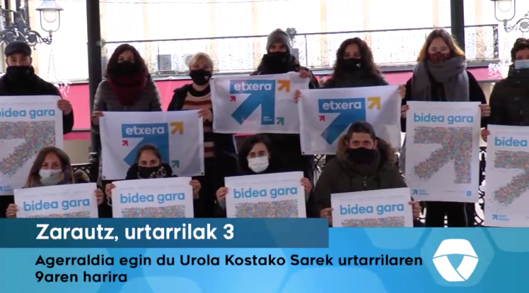 Urola Kostako Sarek agerraldia egin zuen Zarautzen atzo, igandea, urtarrilaren 9ko mobilizazioen harira. Izan ere, aurten ez dute manifestaziorik egingo Bilbon eta Baionan; ekimenak herriz herri egingo dituzte. Agerraldian izan ziren Aiako, Getariako, Orioko, Zarauzko eta Zumaiako kideak.